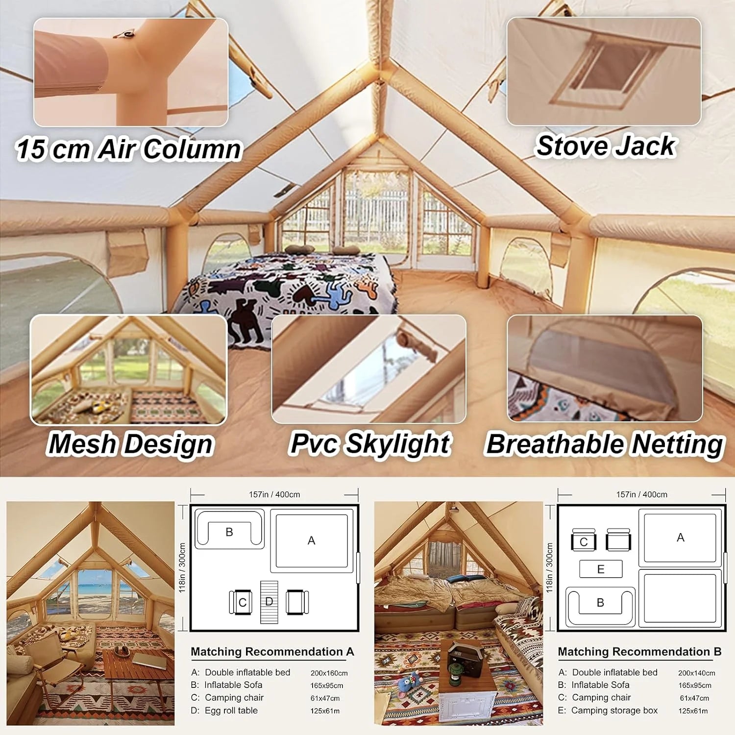 Inflatable Camping Tent For 8 To 10 Persons Waterproof